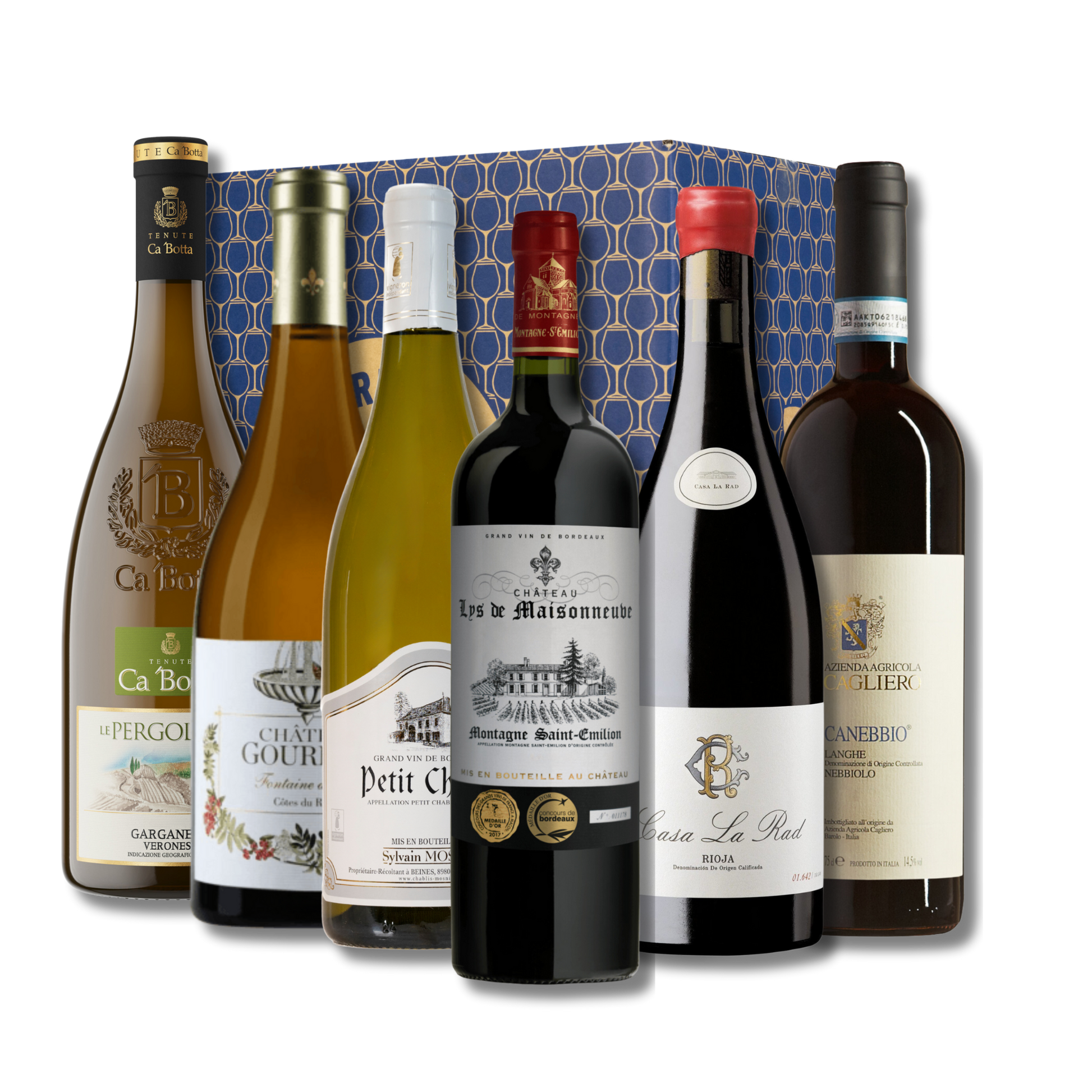 Discover a collection of fine wines that showcase the craftsmanship of exceptional winemaking. Start with the Chateau Lys de Maisonneuve Montagne Saint-Emilion, offering elegance and depth. The Casa La Rad Tinto Rioja provides rich complexity, while the Cagliero Canebbio Langhe Nebbiolo brings vibrant acidity and floral notes. For whites, the Sylvain Mosnier Petit Chablis offers refreshing minerality, and the Chateau de Gourdon Fontaine du Sud Côtes du Rhône Blanc features vibrant fruit and floral aromas. Finally, the Tenute Ca 'Botta Le Pergolette Ripasso-style Garganega Bianco Veronese adds a layer of richness with its smooth, complex character. A perfect selection for any wine lover.