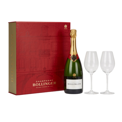 This Bollinger Special Cuvee gift box contains a 75cl bottle of Bollinger Special Cuvee champagne along with two beautiful Bollinger engraved flutes in a sleek presentation case.